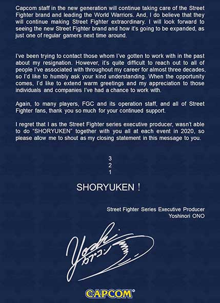 Street Fighter Producer Yoshinori Ono Quits Capcom