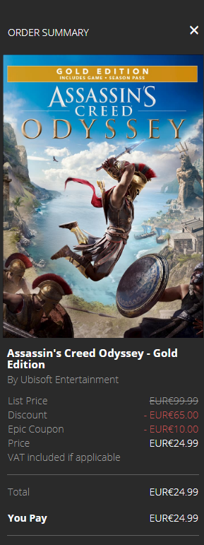 To AC Odyssey Gold Edition στα 35 ευρω απο Epic store και παει στα 25 με το κουπονι που ειχε δωσει η epic στα sales του 2019. Εφυγε αγορα εννοειται δινουν μαζι και το AC3 το οποιο δεν εχω παιξει και το ειχα στο προγραμμα να το παρω. Το απολυτο bundle για εναν fan των AC παιχνιδιων οπως εγω. Επισης αυτη τη βδομαδα εχουν το Innerspace δωρεαν για οποιον ενδιαφερεται δειχνει αρκετα χαλαρωτικο παιχνιδι στα επιπεδα του ABZU.